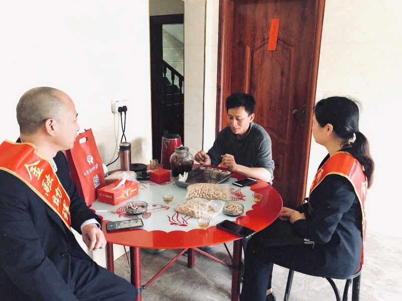 貢川信用社主任鄧士發帶領金融助理披上鮮紅的綬帶,集中時間開展入戶調查和走訪摸排,結合制定的“走訪作戰圖”,向村民特別是受疫情影響較大的困難戶解讀、宣講金融政策,了解農戶的資金需求、備耕計劃、銷售方向等,掌握第一手信息。根據工作臺賬和檔案資料,鄧士發列出扶持清單,為農戶量身制定授信方案。