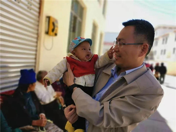 福建援藏隊洛隆工作組王志強調研時與陪媽媽上醫院的藏族小孩真情互動。圖片來源:福建第九批援藏隊