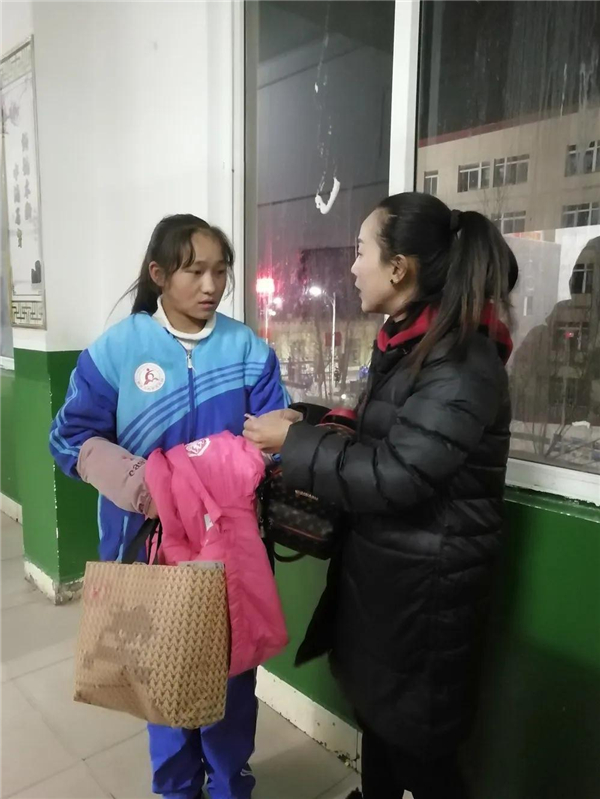 昌都卡若二中福建援藏教師曾曉梅為掛鉤幫扶的藏族學生提供冬季義務。圖片來源:福建第九批援藏隊