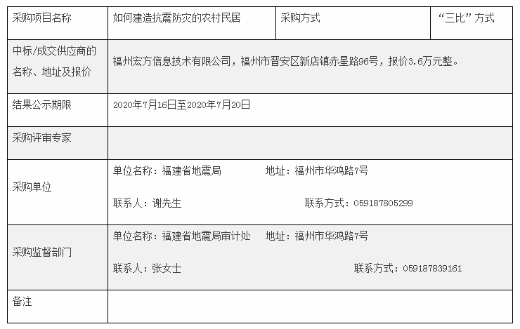 《如何建造抗震防災的農村民居》動畫視頻采購結果公告