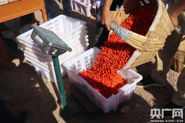 村民排隊等待枸杞收購(央廣網記者 母晨靜 攝)