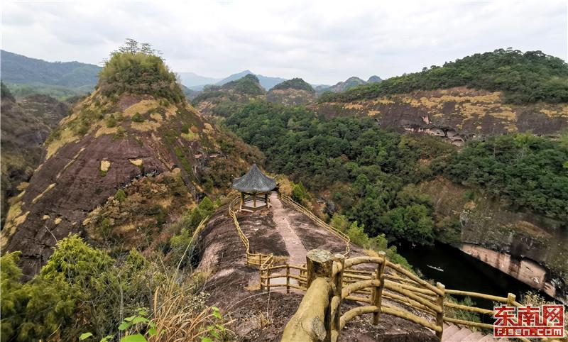 近年來,泰寧縣立足丹霞田園風光、原生態森林景觀、厚重歷史文化底蘊等優勢,著力打造“養心、養生”為主題的文旅康養項目,為泰寧發展文旅康養產業、實施鄉村振興戰略帶來新的機遇,同時也為實現生態“高顏值”、發展“高質量”奠定堅實基礎。圖為游客在九龍潭景區游覽丹霞秋色。福建日報通訊員 邱燦旺 攝影報道