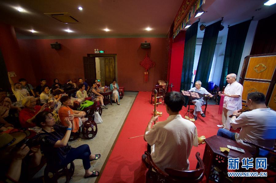 鼓浪嶼代表性歷史建筑“海天堂構”內閩南南音老藝人在為游客表演南音。新華社記者姜克紅攝