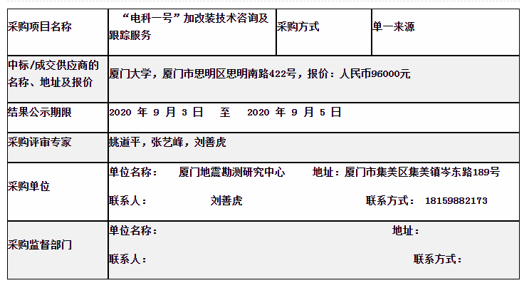 “電科一號”加改裝技術咨詢及跟蹤服務采購結果公告