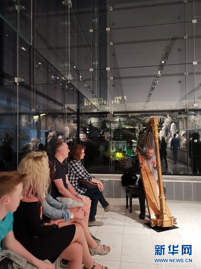 在希臘雅典,人們在衛城博物館欣賞表演。 新華社記者 李曉鵬 攝