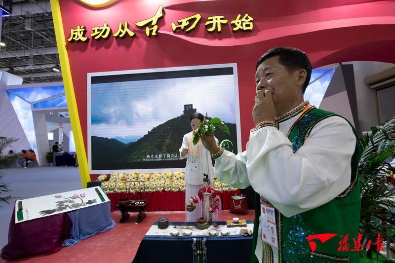 上杭縣古田展區,傳統的樹葉吹奏技藝和客家提線木偶表演亮相。(福建日報記者 王毅 攝影報道)