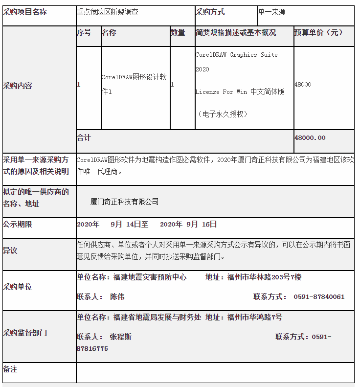 我局對2020年CorelDRAW圖形軟件擬采用單一來源采購方式進行采購,現公示如下: