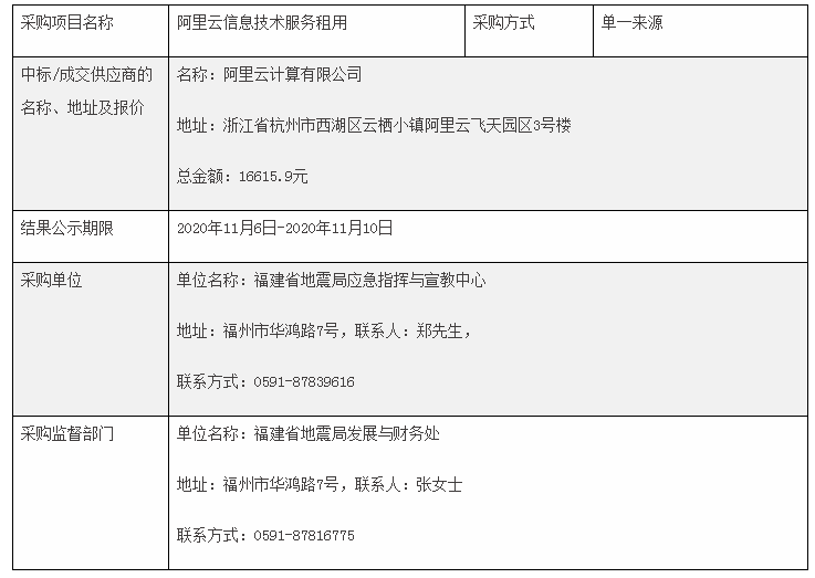 應急指揮與宣教中心阿里云信息技術服務租用采購結果公告