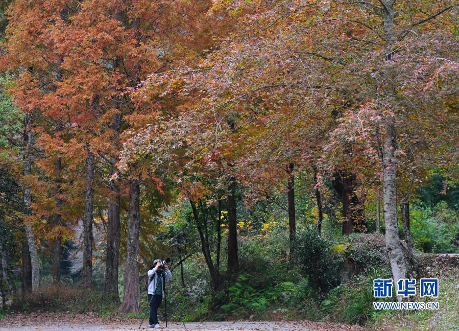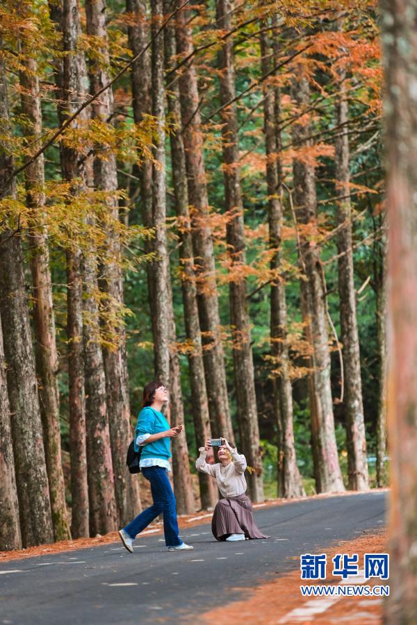 11月19日,游客在福建省三明市將樂縣國家級自然保護區水杉大道游覽。新華社記者 宋為偉 攝