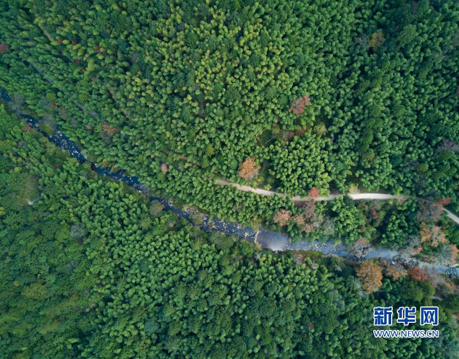 這是11月19日拍攝的福建省三明市將樂縣國家級自然保護區水杉大道(無人機照片)。 龍棲山國家級自然保護區位于福建省三明市將樂縣。近年來,該縣利用當地得天獨厚的生態條件,發展全域森林康養產業,并于今年6月入選首批國家森林康養基地名單。新華社記者 宋為偉 攝