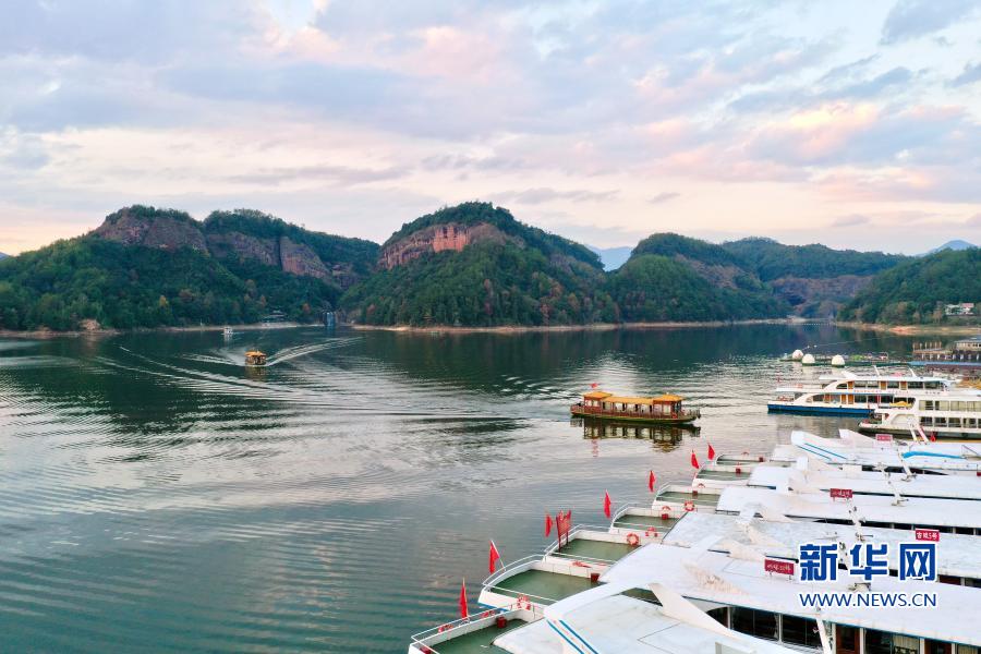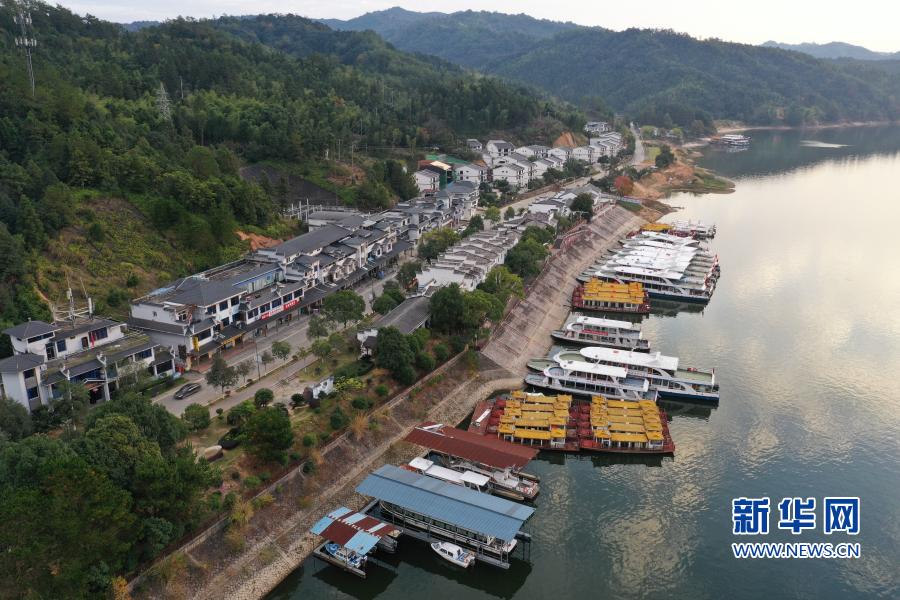 福建省泰寧縣大金湖畔的梅口鄉水際村及游客碼頭(11月19日攝,無人機照片)。新華社記者 姜克紅 攝