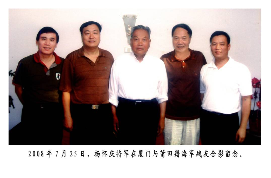 楊懷慶同志生前曾多次到過福建,他對福建這片擁軍熱土懷有一股深情,又特別記掛我這個曾經的老部下。每每到福建,老首長總會惦記召見我,與我促膝長談,了解基層部隊的有關動態,詢問我到福建后的工作、學習和家庭狀況,關心我的成長進步,鼓勵我繼續為部隊建設和地方發展多做貢獻。