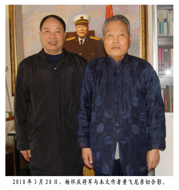 2012年12月12日下午4時許,我從寧波乘動車返家鄉莆田途中,突然接到楊野平戰友從北京傳來了我心目中最敬重的老首長、海軍原政委楊懷慶上將病逝的消息。噩耗傳來,曾是楊將軍老部下和36年摯友的我悲痛欲絕,當即致電其長女秀月并轉朱秀英夫人表示吊唁,為我黨我軍失去這樣一位政治堅定、德才兼備的儒將而倍加惋惜,為自己人生旅程失去這樣一個良師益友、和藹可親的首長而深感痛心!