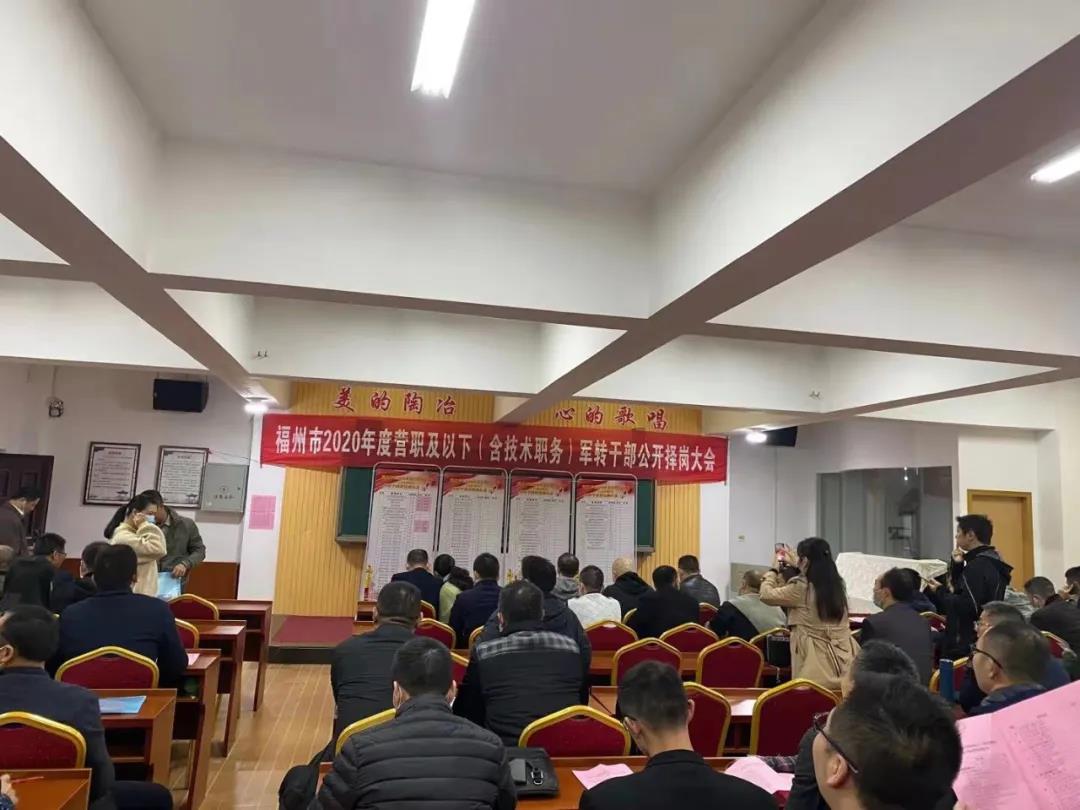 日前,福州市完成2020年度營職及以下(含技術職務)軍轉干部公開擇崗工作,順利實現符合安置條件的軍轉干部100%安置到行政和參公崗位的目標。