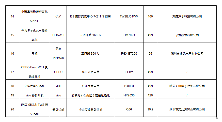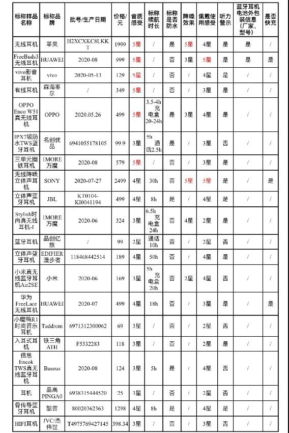 從本次耳機產品比較試驗情況來看,20款樣品全部符合相關標準要求。具體如下:
