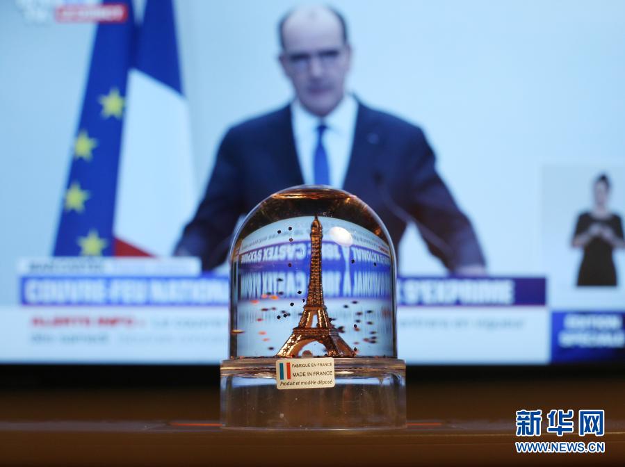 這是1月14日在法國巴黎拍攝的法國總理卡斯泰舉行關于新冠疫情的新聞發布會的電視畫面以及一個埃菲爾鐵塔的擺件。 法國總理卡斯泰14日表示,鑒于新冠疫情形勢依然“不穩定”,法國將實施更嚴格的入境規定等防疫新規??ㄋ固┬?,法國將自18日起對歐盟成員國以外人員實施更嚴格的入境規定,這些人在入境法國時須提供出發前72小時內新冠病毒核酸檢測陰性證明,并接受7天的隔離觀察??ㄋ固┻€說,從16日開始,法國將把宵禁實施范圍擴大至全國,宵禁時間調整為每日18時至次日6時,有效期至少持續15天。 新華社記者 高靜 攝 |