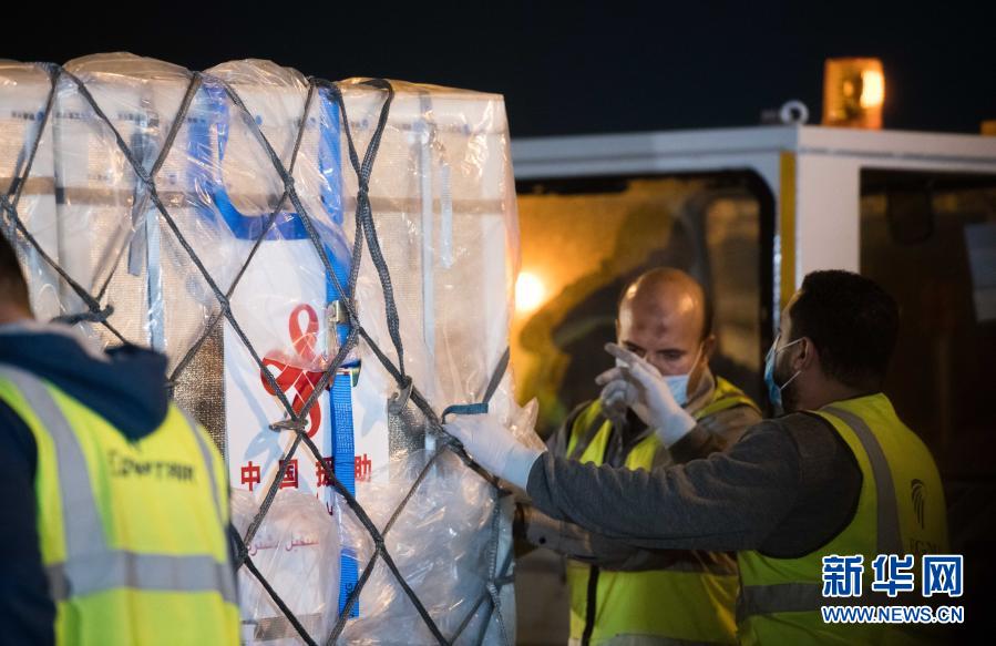 2月23日,在埃及開羅國際機場,工作人員運輸疫苗。新華社記者 鄔惠我 攝 廖力強表示,中國援埃疫苗順利交接是落實兩國元首對中??挂吆献髦匾沧R的有力舉措,是中阿、中埃共建衛生健康共同體的生動詮釋,是雙方朝著新時代構建命運共同體邁出的又一堅實步伐。他表示,援助疫苗是落實中方關于把疫苗作為全球公共產品重要宣示的實際行動。中方愿繼續為埃方提供力所能及的支持和幫助,希望埃及早日戰勝疫情,全面恢復經濟社會生活正常秩序。