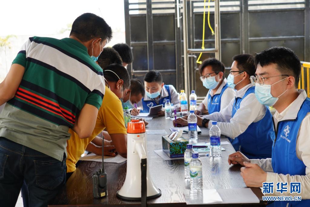4月6日,在斯里蘭卡科倫坡一個疫苗接種點,志愿者正在幫助前來接種疫苗的中國公民進行登記。新華社記者 唐璐 攝