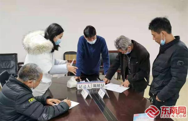 當事人簽署協議書(常太司法所 供圖) 東南網莆田3月11日訊(本網記者 李劍軍)劍拔弩張的相鄰,因他握手言和;反目成仇的朋友,因他和好如初……他是莆田市城廂區常太司法所的一名調解員卓金飛。6年多來,卓金飛共參與各類矛盾糾紛調解100余起,其中疑難復雜案件10余起,調解成功率達99%。 2013年9月,卓金飛從部隊轉業到城廂區司法局常太司法所從事人民調解工作,從未系統學習過法律知識的他深感工作十分吃力。為做好司法調解工作,成為一名合格的基層人民調解員,他自費去進修心理學專業知識,利用休息時間購買閱讀法律書籍,補充法律知識。正因為有了足夠的知識儲備,讓他在處理日常的糾紛時,更加地得心應手。 2020年11月,吳某國和吳某明本是一對要好的兄弟,因弟弟吳某明私自將兩家共有的土地與鄰居置換,便產生了本不該發生的糾紛?!爸脫Q的土地里面,部分所有權應是屬于我們的,在置換前卻沒有和我們有任何表示?!眳悄硣钠拮訉Υ水a生了質疑。在了解情況后,卓金飛馬上介入調解,避免事態進一步擴大。 “兩家其實本沒有什么隔閡糾紛,主要是事先沒有做好溝通?!弊拷痫w告訴東南網記者,在經過多次多方協商后,對幾家的土地財產進行合理分配,得到當事人的一致同意,并達成了共同協議?!翱吹剿麄兒秃萌绯?,我們也感到十分欣慰?!弊拷痫w露出了燦爛的笑容。
