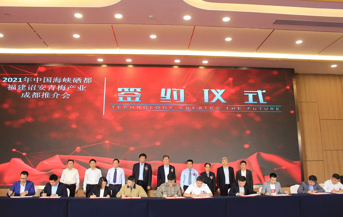 簽約現場 主辦方供圖 為把青梅產業打造成享譽全國的健康美食名片,在成都糖酒會喜迎八方客商期間,4月3日,由詔安縣委、縣政府主辦,詔安縣農業農村局、詔安縣青梅協會承辦的“2021年中國海峽硒都·福建詔安青梅推介會”在成都瑞城名人酒店成功舉辦。 《中國食品報》副總編馬崢、中國食品工業協會副秘書長徐堅,詔安縣人民政府縣長李亞容、副縣長林惠溪,以及喜多多集團、紫山集團、鹽津鋪子、白水杜康等來自全國各地經銷商、商協會代表、媒體記者等近兩百人參加。 本次推介會以“福硒詔安 梅香天下”為主題,融入“中國青梅之鄉”“中國海峽硒都”“世界長壽之鄉”等元素;以青梅產業推介會為載體,整合融入青梅等詔安國家級名片元素;以梅為媒,經貿唱戲,把壯大青梅產業、推動產業升級等有機結合起來。 悠久的青梅種植栽培、加工制作歷史,逐漸沉淀為獨特的詔安青梅文化,青梅產業成為詔安縣最具特色的產業。詔安縣種植青梅始于明代,大規模商品化種植已有三十多年的歷史,主要種植有“青竹梅”“白粉梅”“紅梅”“水梅”等多個品種。研究顯示,詔安青梅具有果大、核小、肉厚、酸度高等特點。除富含人體所需的18種氨基酸外,還富含硒元素。 通過近年來科學規劃發展,詔安縣擁有全國最完善的青梅加工體系和最大的青梅加工規模。全縣擁有青梅加工企業130多家,其中規模以上青梅加工企業21家。擁有省級農業產業化龍頭企業6家,市級10家,縣級22家,已開發出青梅蜜餞類、青梅鹽漬類、青梅涼果類、青梅酒類、青梅飲料類、混制品類、保健食品類等7大系列300多個品種的青梅精制產品。 目前,全縣種植青梅面積13.3萬畝,總產量達10.5萬噸,總產值達60億元,年出口產值達8000多萬美元,是我國主要青梅生產加工和出口產業基地。 近年來,詔安縣委、縣政府以及詔安縣青梅協會等有關單位協同努力,為詔安青梅如何實現高質量發展指明了方向。詔安青梅這顆生態果、富硒果,逐漸被打造成為引領健康潮流的時尚果、帶領群眾增收的扶貧果、支撐經濟發展的致富果,成功走上了一條生態環境“高顏值”與經濟發展“高質量”融合的綠色之路。 據悉,在成都春糖舉辦前夕,詔安縣通過在成都地鐵和戶外大屏、微信朋友圈等方式進行廣告投放,全方位展示詔安青梅品牌形象。4月1—6日,在成都梨園祥酒店設立青梅產業展示館,組織10家青梅代表企業、百余種產品參展,進行宣傳推廣招商,歡迎來自全國各地的采購商前往品鑒詔安青梅、了解詔安青梅、愛上詔安青梅。 據了解,截至3日下午,詔安縣10家企業與58家來自全國各地客商簽訂意向銷售合作總額達10.6億元。其中,推介會上,福建暖春酒業股份有限公司、詔安梅滿天下食品有限公司、福建省詔安四海食品有限公司、漳州市順興達食品有限公司、詔安縣瑞梅食品有限公司等10家詔安縣青梅產業代表性企業與杭州榕慶食品有限公司等10家客商舉行意向銷售合作簽約,簽約總額達3.12億元。 |