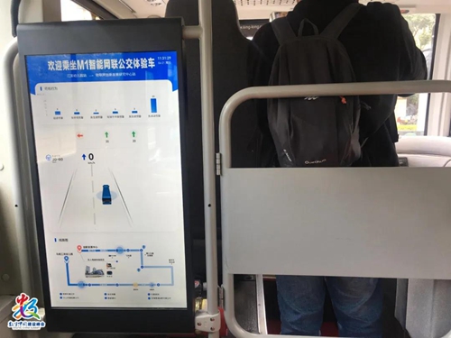 乘坐5G智慧公交,乘客可以體驗到以下場景:車輛會實時提示與前車的行車安全距離,車距過近時,會聽到安全預警;需要轉彎時,車輛發出轉彎警告并減速;車輛還可以自動研判前方紅綠燈狀態,以最佳時速綠波行駛通過交叉路口。值得一提的是,行駛時如果檢測到消防車、救護車等特種車輛,以及行人穿行斑馬線,車輛會提示停車讓行或減速避讓。體驗車上配備了液晶顯示屏,車輛途經每個站點,屏幕會顯示相關內容,讓乘客直觀感受到車聯網技術是如何應用的。