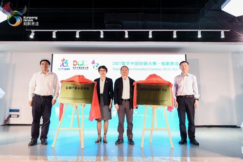 福州市政協副主席鄭云春、福州市鼓樓區委書記朱訓志、福州市鼓樓區長黃建新、福建省工業和信息化廳軟件服務業處處長劉少洪共同出席總決賽活動,并為“中國數谷·信創產業示范基地及協同攻關和體驗推廣中心”揭牌。