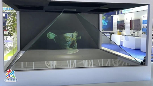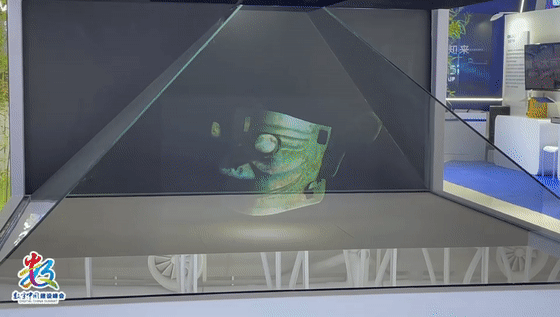 三星堆文物通過 3D全息投影技術 將文物影像懸浮在柜體實景中 實現具有360°絕對可視的特效 縱深感非常強