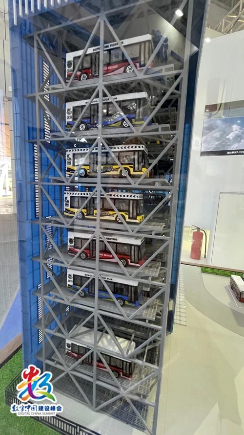 1、2、3、4、5……9! 公交車也能疊羅漢? 聽起來不可思議 在10號館里能“變現” 展商帶來的立體式公交綜合車場模型 讓市民對未來福州建設 首座立體式公交綜合車場 有了期待