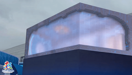 街區內 還有一塊 裸眼3D大屏! 快看!圓乎乎的“數娃” 從屏幕里“飛”出來 迎接大家!