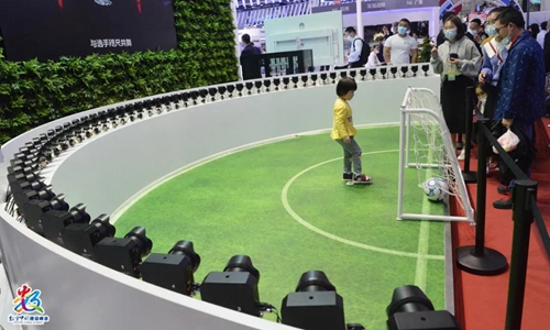 華為“風暴時刻”利用60臺相機高清視頻記錄瞬間 。鄭帥 攝 5G+8K超高清視頻新應用、全球首創載人級自動駕駛飛行器等一大批新技術新產品令人矚目;稅務機器人、“掌上多規”選址系統、可信數字身份等一個個電子政務應用新成果紛紛登臺;無人餐車、智慧茶園、VR教室等一個個智能化生產生活場景引人入勝,AI李清照穿越古代,為觀展市民上了一堂詼諧的詩詞課;給管道燃氣裝上5G智能自閉閥,通過物聯網就能實現泄漏自動關閉、手機遠程控制關閉和超溫報警。