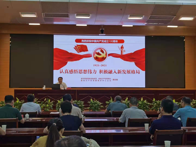 認真感悟思想偉力,積極融入新發展格局 ——省知識產權局局長顏志煌為黨員干部講授黨史學習教育專題黨課 按照黨史學習教育統一部署,根據省市場監管局黨組安排,6月22日下午,省市場監管局黨組成員、省知識產權局局長、省知識產權發展保護中心主任顏志煌為分管處室及單位講授黨史學習教育專題黨課。省市場監管局網監處、知識產權保護處、知識產權運用促進處、商標監督管理處黨員干部,以及省知識產權發展保護中心、產業知識產權保護中心黨員干部參加。