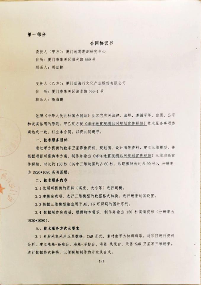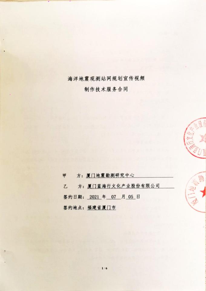 廈門地震勘測研究中心海洋地震觀測站網規劃宣傳視頻制作技術服務合同公示