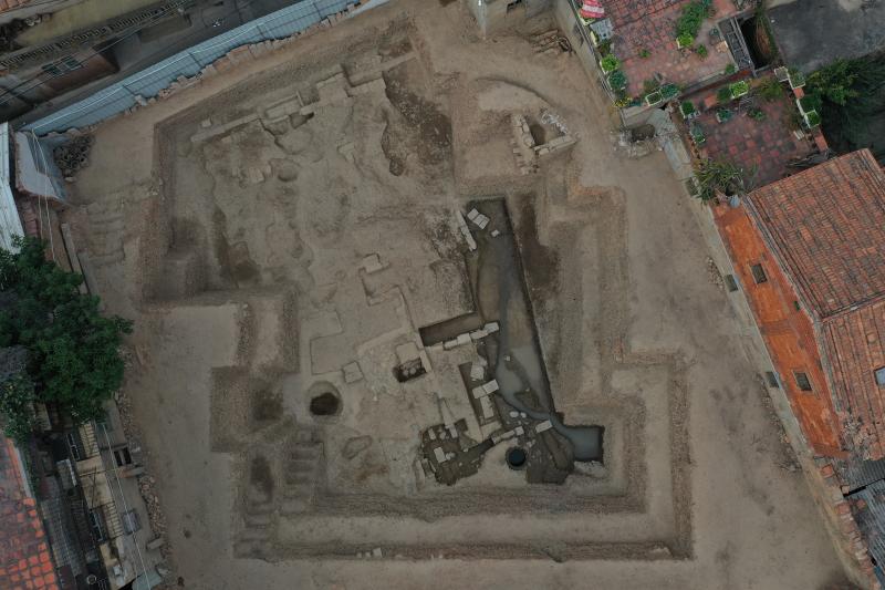 市舶司遺址東北發掘區考古發掘鳥瞰圖(王俊攝影)