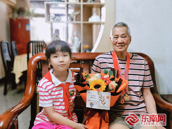 孩子送爺爺喜歡的花。 學校供圖 東南網10月18日訊(本網記者 施遠圻)史詩戰爭巨制《長津湖》自上映以來,便引發全民共情,上到抗美援朝老兵、下到少先隊員都紛紛走入影院觀影,形成一場全國范圍的“長津湖效應”,不少人還通過各種形式向老英雄們致敬。在泉州,有這么一群少先隊員,觀影后便開啟了尋找身邊的“長津湖”故事。 他們來自泉州市通政中心小學,“看完電影師生們都非常感動,有的孩子還曬出自己祖輩參加抗美援朝時留下的功勛章、老照片,于是學校便決定開展‘我和我的祖輩——尋找身邊的《長津湖》’活動?!痹撔|h支部書記、校長曾鳳蓉介紹道,由學生尋找并采訪家中參加抗美援朝戰爭的祖輩,用視頻、文字記錄相關故事。 開啟“訪談”模式 聽長輩講過去的故事 “以前太爺爺在女兒的眼里是個慈祥的老人家,現在他是女兒眼中的英雄?!睂W生家長許女士告訴記者,國慶節期間,女兒許梓妍與太爺爺一起觀看電影《長津湖》,長達3個小時電影,讓女兒對中國人民志愿軍心生敬意,也讓參加過抗美援朝戰爭的太爺爺回憶起過往很多事。 回到家后,許女士告訴女兒太爺爺曾是參加抗美援朝戰爭中的一名戰士,這讓許梓妍肅然起敬,與弟弟纏著太爺爺講過去的故事。年僅10歲的許梓妍第一次看到太爺爺珍藏已久的功勛章和老照片,從老照片中她還認識了太爺爺的戰友們。 “太爺爺告訴我參加抗美援朝戰爭中,條件非常艱苦,面對美軍的飛機、大炮,戰士們沒有退縮,拿著手雷步槍義無反顧地往前沖?!痹S梓妍說,太爺爺他們為了祖國不畏生死、勇敢向前,他們的精神值得我們學習,我們要努力學習,鍛煉好身體,將來為國家的建設作貢獻,做一名合格的接班人。 三年級學生林書慧聽完爺爺的事跡后,則為爺爺精心挑選一束花,并在賀卡上寫下“祝爺爺:幸??鞓?!身體健康!”的祝福語??吹綘敔斈贻p時候的照片,她覺得身穿軍裝的爺爺非常帥,與同學們提到爺爺時,害羞的林書慧臉上也難掩自豪。 黨支部將牽頭再整理 留住歷史故事 作文、視頻、翻拍的老照片……活動開展后,學生們陸續提交自己采訪、搜集所得??紤]到不少學生家中沒有參加過抗美援朝戰爭的英雄,無法親身參與到活動中,學校還將部分學生上交的作品編輯成文,在學校官方微信公眾號推送,并組織相關學生在主題班隊課上分享。 “我的外公參加抗戰時,因子彈從耳朵從左耳穿過,導致左耳失聰?!蔽迥昙墝W生高陳皓與同學們分享自己外公光輝的過去時,讓他感覺非常自豪,同學們也都聽得很認真。伴隨著活動的開展,學校不少老師也主動分享自己父輩、祖輩參加抗美援朝戰爭的故事,尋找身邊的“長津湖”故事成為全校師生都在做的一件事。 “通過學生們提交的作品,我們能看到他們對老英雄們滿滿的敬意,給老師們不少驚喜。但我們也發現他們所提交的作品,缺少細節、不夠生動,無法還原祖輩參加戰爭的故事,這樣非??上??!痹P蓉說道。 接下去,該校黨支部將組織黨員教師走入學生、教師家中,采訪老英雄或英雄遺屬,將每位受訪者的口述文字、音視頻進行整理,將歷史故事留下來,并編纂成校內讀物,供學校師生閱讀,銘記歷史。 |