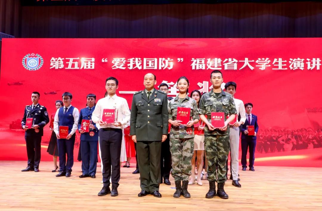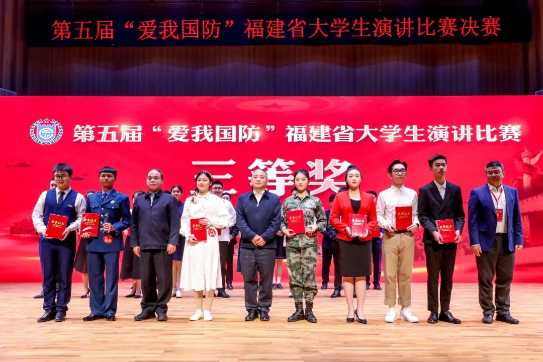 決賽現場,選手們圍繞中國夢、強軍夢、家國情懷、時代使命、參軍報國等方面,以動人的事跡、飽滿的熱情,回顧中國共產黨光輝歷程,重溫建黨百年崢嶸歲月,展現了福建省高校學子的愛國情懷與責任擔當。一段段驚心動魄的經歷,一個個感人至深的故事,打動了在場的每一位觀眾。 經過激烈角逐,最終來自莆田學院的林歡、戴君杰、王車昭獲得一等獎;集美大學的李瑋瑜和福建師范大學陳瀾軒、張晉濤、陳翰如獲得二等獎;龍巖學院黃曉婕、三明學院林思盈、張崇標、李佳豪以及華僑大學、黎明職業大學的蘇斯、陳彥宏、陳松杰組成的聯隊獲得三等獎;福建警察學院彭信予、廈門大學嘉庚學院郭滿滿等12組選手獲得優勝獎;泉州市國防教育辦公室、莆田市國防教育辦公室、南平市國防教育辦公室、三明市國防教育辦公室、福建警察學院、集美大學、莆田學院、龍巖學院和寧德師范學院9家單位獲得優秀組織獎。