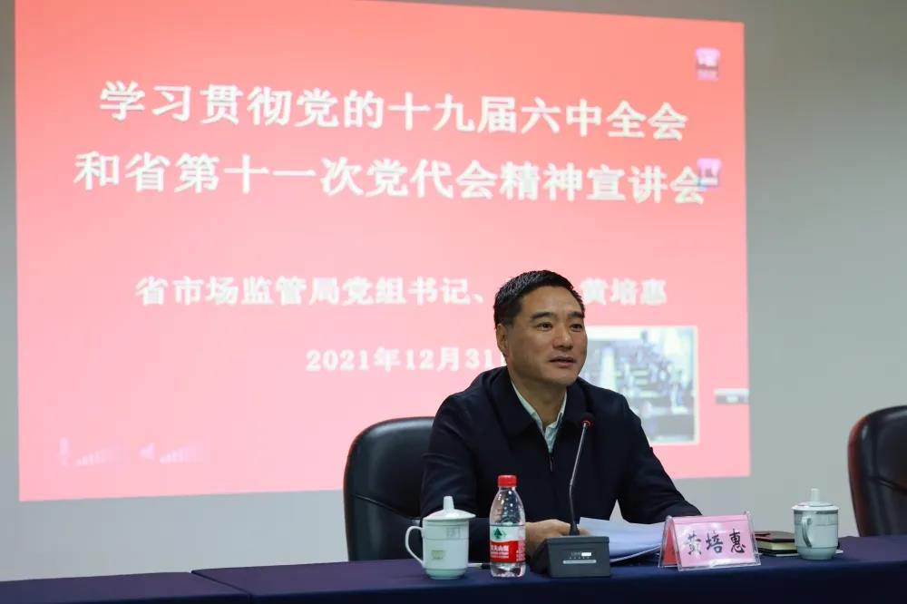 宣講中,黃培惠以黨的十九屆六中全會和省第十一次黨代會的重大意義為切入點,從“堅持學深悟透,深刻把握六中全會和省黨代會精神的豐富內涵、精髓實質”“堅持知行合一,對照新部署新要求統籌推進市場監管各項工作”“堅持黨建引領,不斷提高黨的建設質量和科學化水平”三個方面開展宣講。
