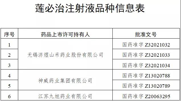 根據《中華人民共和國藥品管理法》第八十三條等有關規定,國家藥品監督管理局組織對蓮必治注射液開展了上市后評價。 經評價,國家藥品監督管理局決定自即日起停止蓮必治注射液在我國的生產、銷售、使用,注銷藥品注冊證書。已上市銷售的產品,由藥品上市許可持有人負責召回,召回產品由所在地省級藥品監督管理部門監督銷毀或者依法采取其他無害化處理等措施。 附:蓮必治注射液品種信息表