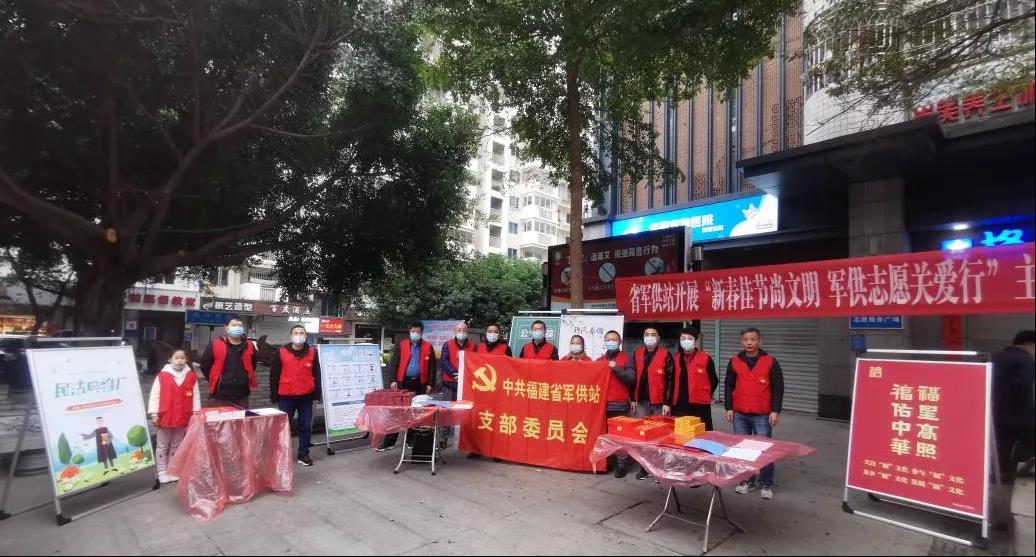 1月26日,省軍供站走進福州鼓樓區東街街道大根社區開展“新春佳節尚文明 軍供志愿關愛行”主題活動。