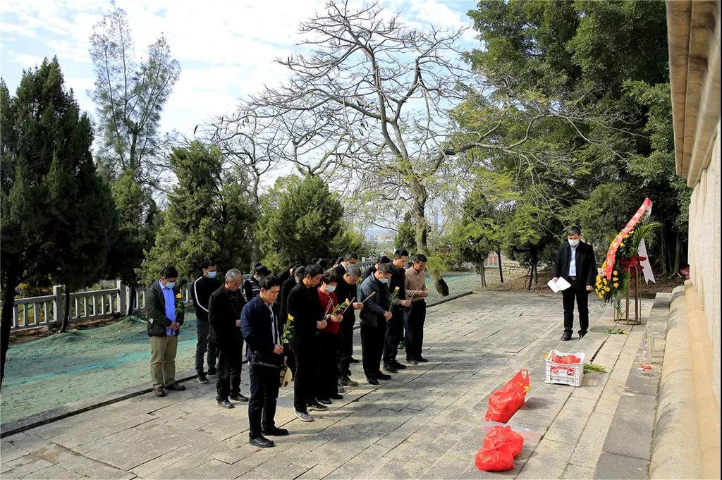 隨后,全體人員在烈士公墓前整齊肅立,向郭地隊烈士默哀,深切緬懷為革命事業英勇獻身的革命先烈,并向烈士敬獻花籃。