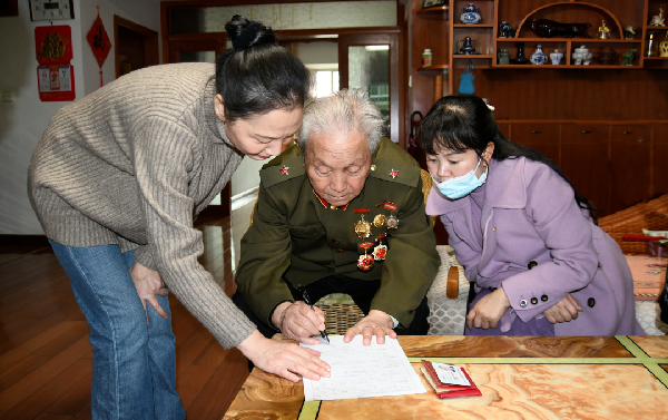 3月7日,龍巖市優待證申領制發服務先鋒隊志愿者到行動不便的軍休干部戴木成家中開展上門服務,采集辦證信息,介紹優待證的申領制發流程和合作銀行優惠政策。