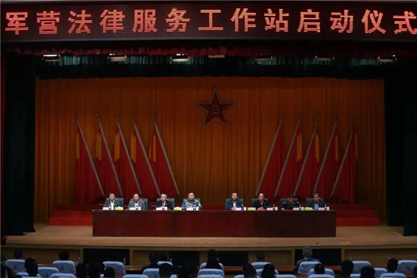 軍營法律服務工作站啟動儀式現場 據悉,“一站四點四服務”軍營法律服務工作機制,通過在部隊設立軍營法律服務工作站,采取“司法功夫茶”模式,開展法律服務“每月談”;在駐地法院、檢察院、公安局、司法局設立4處法律服務工作聯系點,提供駐點法律服務的方式,由軍地政法單位共同做好普法教育、法律咨詢、情況受理、骨干培養等工作,為保護國防利益、及時妥善處理和解決部隊、官兵及家屬涉法問題,維護合法權益提供有力保障,讓官兵們能夠全身心投入到備戰打仗中。