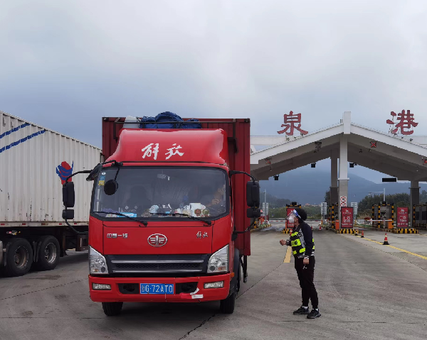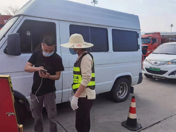 由于人手緊缺,查驗點數量有限,高速路口上常常排起車輛“長龍”,莊小敏不得不穿梭在車隊間,扯著嗓子一遍遍的喊,讓司機事先帶好口罩、掃碼登記、打開健康碼等,以便車輛能快速查驗通過?!昂韲刀己皢×?,感覺像是回到了部隊練兵的時候?!彼χf。