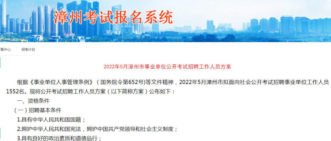 近日,漳州市人社局 發布最新消息 公開招聘事業單位工作人員1552名 4月20日起報名 5月21日筆試 其中,符合相關條件的退役士兵 可以報考“專門崗(職)位” 可享有筆試卷面分最高10分加分待遇 各位戰友們,機會不容錯過