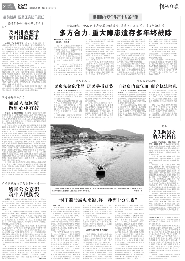 本報訊 記者沈良坤報道 5月27日,福建省召開全省防汛視頻工作會議。省委書記尹力在會上強調,要深入貫徹習近平總書記關于加強防汛抗旱救災工作的重要指示精神,按照黨中央、國務院決策部署,堅持人民至上、生命至上,統籌發展和安全,立足防大汛、搶大險、救大災,以更高標準、更嚴要求、更實舉措全力抓好防汛防災各項工作。 尹力指出,5月中旬以來,福建省進入降雨集中期,降雨持續時間長、影響范圍廣、累積雨量大,容易引發地質災害,防汛任務艱巨繁重。各級各部門務必要加強監測預警,完善應急預案,統籌調度力量,進一步提高防災救災工作的科學性針對性有效性,盡最大努力減少災害損失。監測預警要到位,加強對雨情、水情、汛情、地質災害等滾動預測預報,強化分析研判,增強提前量、提高預見度,第一時間發送預警信息到村、到戶、到人,守好防災減災的第一道防線。隱患排查要到位,開展全方位、無死角、拉網式排查,加強人技同防,做到心中有數。加強江河洪水防范,強化汛期堤壩巡查搶護,避免出現潰口垮壩等重大險情。加強地質災害防范,仔細排查地災隱患點和易發區等,確保險情早發現、早預警、早處置。加強城市內澇防范,加緊清疏排水河道管渠,提前做好排澇準備。轉移避險要到位,必須堅決果斷、安全迅速,應撤必撤、應撤早撤,確保不漏一戶、不落一人,保障被轉移群眾的基本生活。要細化完善避險疏散轉移方案,提前預置搶險物資和隊伍,及時搶修基礎設施,保障水電、交通、通信等暢通,確保應急狀態下調得出、運得快、用得上。妥善做好災后救助,適時開展恢復重建。 尹力要求,各級黨委和政府要加強組織領導,全面落實防汛救災主體責任,壓緊壓實各方責任,推動各項工作落到基層、落到實處。要強化應急響應協同聯動,健全防汛統一指揮機制,暢通信息報送渠道,強化值班值守,形成工作合力。高效統籌疫情防控和經濟社會發展,是對各級領導干部的一種考驗。要堅持穩字當頭、穩中求進,全力以赴防災減災、防控疫情,千方百計穩增長、穩市場主體、保就業,努力實現全年經濟社會發展目標任務。