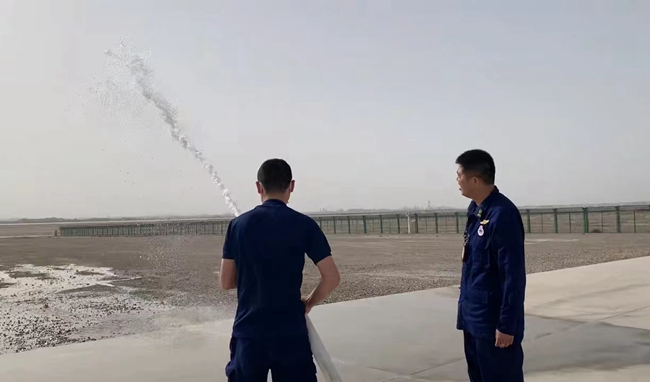 檢查組成員在唐王城機場檢查消防安全,泡沫滅火裝置內噴出水柱。(南方周末記者韓謙/圖) “出泡沫了,出泡沫了!”機場工作人員看著從泡沫槍中噴向地面的水流說。泡沫槍由20米的消防水帶連接著半固定式泡沫滅火裝置。 “這哪是泡沫?這是水流在地上形成的氣泡?!睓z查組成員讓操作人員將泡沫槍抬高,一道純凈的水柱向空中噴出。 2022年4月28日,國務院安委會第四綜合檢查組在新疆圖木舒克唐王城機場檢查,現場觀摩了專職消防隊的滅火實操。 2022年4月中旬至6月底,國務院安委會組織16個綜合檢查組奔赴全國,對各地安全生產大檢查情況進行綜合督導,并同步開展國務院2021年度省級政府安全生產和消防工作考核巡查。第四檢查組于4月18日抵疆,對新疆維吾爾自治區和新疆生產建設兵團進行為期半個多月的巡查。 正常情況下,消防水帶中的高壓水流經過比例混合器后,會和泡沫液形成混合液,在泡沫槍處噴出滅火泡沫。滅火時,如果管道中只有水噴出,因航空燃油的密度低于水,會浮于水面,形成流淌火,如此狀況不但無法滅火,甚至會造成火勢蔓延。 檢查組成員認為,這是由于機場消防管網壓力不足,導致比例混合器無法吸入泡沫液。 機場、油田消防隊都缺員 根據消防法規定,大型核設施單位、大型發電廠、民用機場,生產、儲存易燃易爆危險品的大型企業等單位應建立專職消防隊。一旦發生火災,專職消防隊是滅火救援的第一處置力量。 在唐王城機場,檢查組發現,這里除了消防設備存在隱患外,專職消防隊人員專業素質堪憂。 “航油的閃點是多少?”檢查組成員、應急管理部消防救援局一級指揮長司戈詢問機場消防隊隊長 。 閃點,是易燃液體蒸氣與空氣形成的混合氣體與火焰接觸燃燒的最低溫度。閃點越低,意味著物質越容易被引燃,火災危險性就越大。 “60攝氏度?!?/p> “你確認?” “63攝氏度?!蹦敲犻L修正了答案。 正確答案是38度。司戈介紹,閃點在28度至60度間,是乙類易燃液體;大于60度,為丙類。 專職消防隊不了解航油閃點等基本參數,可能會導致火災時無法采取正確的撲救措施。 此外,消防隊還存在人員配備不足的問題。 按照機場的滅火應急救援預案,機場專職消防隊一共配備了5臺車,包括1臺指揮車、1臺照明車和3臺消防車,至少需配備1名指揮員、5名駕駛員和12名戰斗員?,F場檢查中,在崗戰斗員僅有6名,比預案要求的數量少了一半。 檢查組成員告訴南方周末記者,企業專職消防隊力量不足并非個案。一些生產經營單位存在僥幸心理,為了減員增效,企業一遇到裁員轉崗,往往先拿處于企業建設邊緣地位的專職消防隊開刀。 檢查組此前對新疆油田專職消防支隊檢查時,也發現了類似情況。按中石油油氣田消防站建設規范規定,消防站一個班次的消防車駕駛員數量按人車1:1配備。目前新疆油田專職消防支隊有105輛消防車,按兩個班次輪班計算,應當配備210名駕駛員,而目前只有104人,還缺106人,每班實際只有五十余名駕駛員在崗,如遇重特大災害事故,難以保障所有消防救援車輛迅速出動。