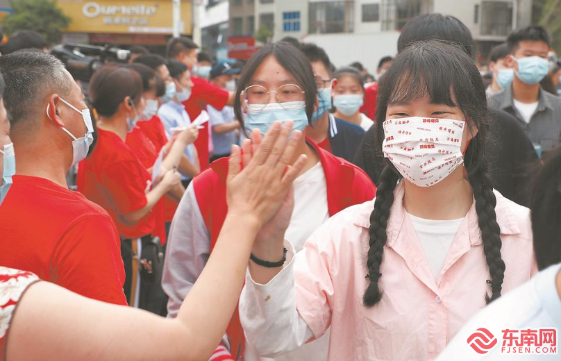 昨日,在周寧縣考場外,老師與考生擊掌加油。福建日報記者 林輝 通訊員 林子杰 攝 東南網6月8日訊(福建日報記者 儲白珊)7日上午,2022年福建省普通高考順利開考。全省各地氣溫涼爽,考生們順利進入各考點。全省各考場秩序井然,考風考紀良好。 今年高考我省有21.8萬名考生報考,全省共設87個考區、221個考點、8465個考場,另設有115個備用考點、1062個備用隔離考場、87個備用病房考點(考場),抽調監考員等考試工作人員4.5萬人參與考務工作。高考期間,省招委會有關成員單位負責人在省教育考試指揮中心聯合值班、集中辦公,共同應對、快速處置可能發生的涉考突發偶發事件。各級招委會負責人及有關成員單位均在當地教育考試指揮中心聯合值班,全力保障高考安全順利。 |