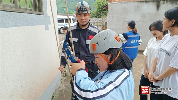 李進福為孩子們做拓展訓練。 “她是我的堅強后盾,有她,我才可能隨叫隨到,隨時出發?!崩钸M福說,每當深夜接到110指揮中心電話要立即出門開展生命救援,妻子總會默默起身與他并行,這樣的逆行已記不清有多少次?!拔乙谇胺街笓]和營救,她負責當我的信息聯絡員,做好現場情況、數據記錄等,還要聯絡其他志愿者,她的作用非常重要?!崩钸M福說。 談到女兒,夫妻倆都很自豪。他們的女兒李婷微今年19歲,是福州英華職業學院大一學生?!霸谖倚W三四年級時,爸媽就帶我一起去做義賣,收二手衣服、書本等,在我心里埋下了愛的種子?!崩铈梦⒄f,受父母影響,她希望自己長大也能成為救援志愿者。