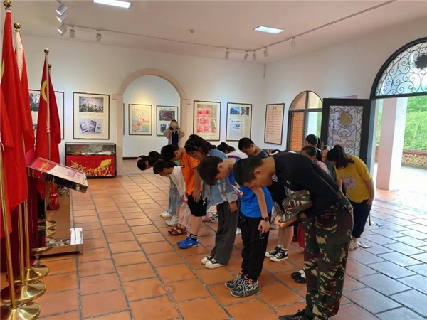 直播前,輔導員陳劉娟老師帶著隊員們,走進龍海區退役軍人紅色教育基地——李林事跡紀念館。在館內,隊員們用心聆聽李林的英雄事跡,瞻仰烈士遺物,并在李林雕像前深深鞠躬,向英雄致以最崇高的敬意!