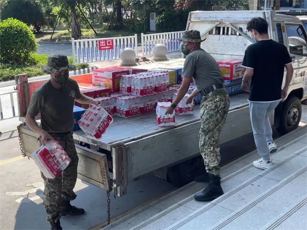 平潭藍天基地作為實驗區的一家軍創企業,得知奮戰在抗“疫”一線的醫護人員生活物資短缺后,主動與紅十字會聯系,向平潭協和醫院以及隔離點的抗“疫”人員捐贈水、飲料、方便面、牛奶、水果等生活物資,為默默奉獻的一線醫務工作者和志愿者送去一絲清涼和關懷。溫暖之舉,詮釋了退役老兵的錚錚誓言,凝聚起同心戰“疫”的強大合力。
