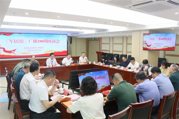 7月21日,省退役軍人廳召開《軍民情》廣播100期座談會,回顧100期廣播情況,共商節目今后發展和退役軍人宣傳工作。省退役軍人廳黨組書記、廳長羅慶春主持會議。省廣播影視集團黨組成員、副董事長陳加偉,省軍區政治工作局副主任周曉松,軍休干部、武警福建邊防總隊原副總隊長王昌太,福建日報社、省廣電集團、支部生活雜志社等新聞媒體資深記者參加座談。
